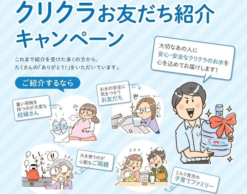 今回はクリクラをお客様のお友だちへご紹介いただくキャンペーンのお知らせです。
