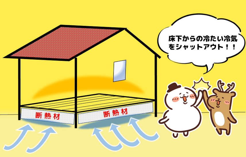 こちらの断熱材は床下からの冷気が入りこむのを遮断してくれます。