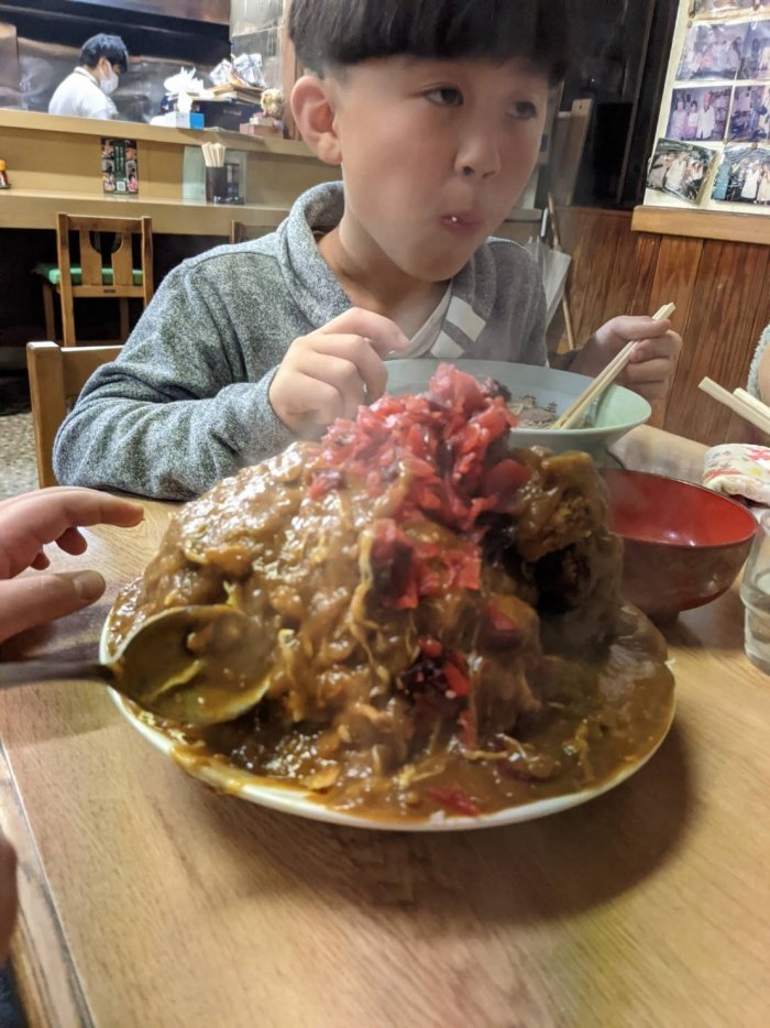 そこはカツカレーの大盛りがすごくて芸能人がチャレンジしてました!我が家も物珍しさでチャレンジしてました!我が家の長男5年生がカツカレーに挑戦しましたが見事に撃沈でした。