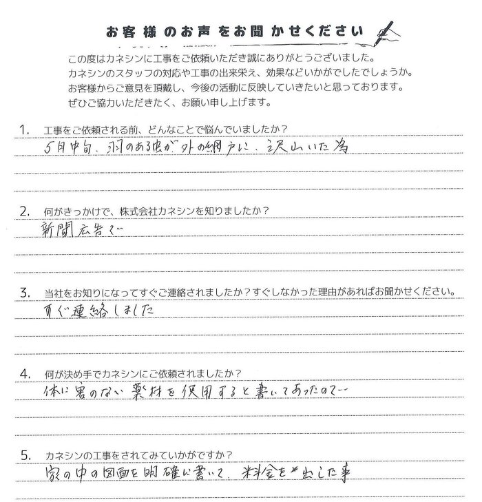 家の中の図面を明確に書いて料金を出したことがよかった。