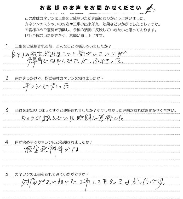 対応がていねいで工事してもらってよかったです。