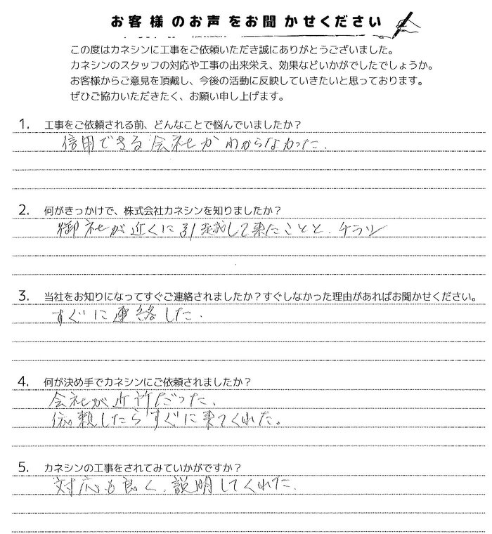 Q.5:カネシンの工事をされてみていかがですか?