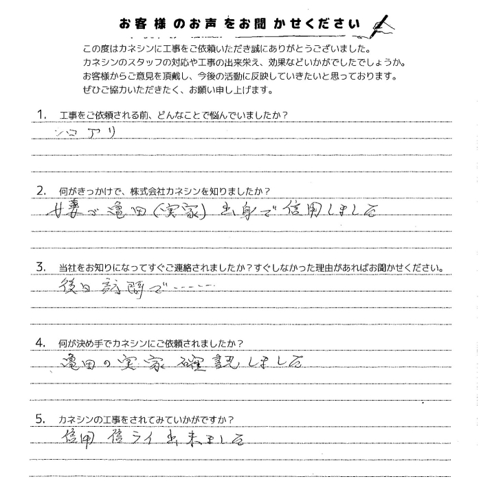 この度は白蟻駆除のご依頼を頂き誠に有難うございました。