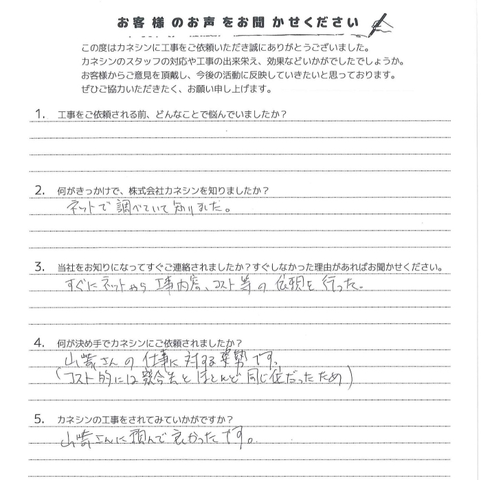 Q.5:カネシンの工事をされてみていかがですか?