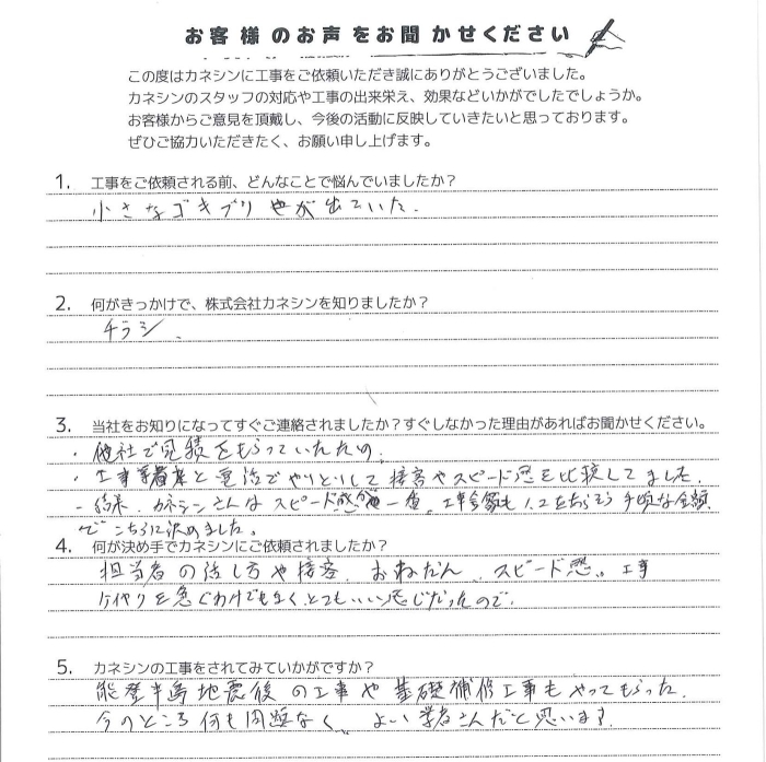 ・結果、カネシンさんはスピード感が一番、工事金額も1.2をあらそう手頃な金額でこちらに決めました。