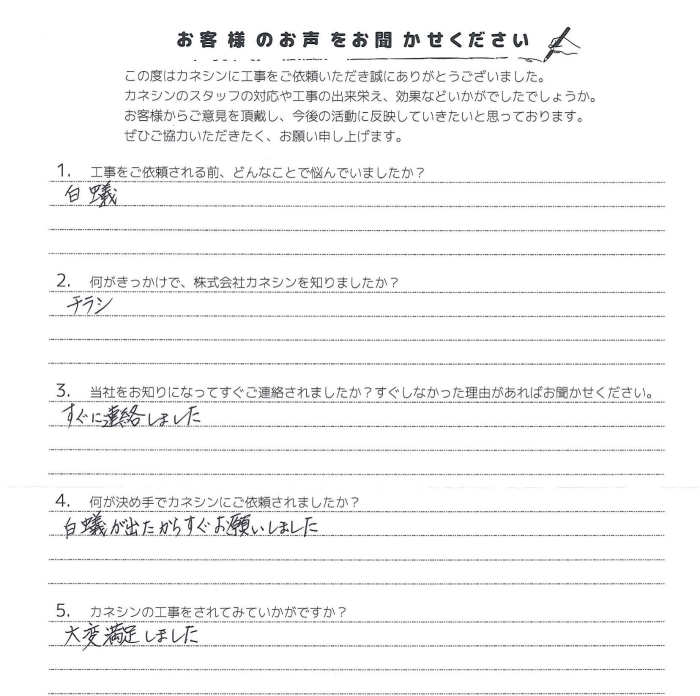この度は白蟻予防のご依頼を頂き誠に有難うございました。