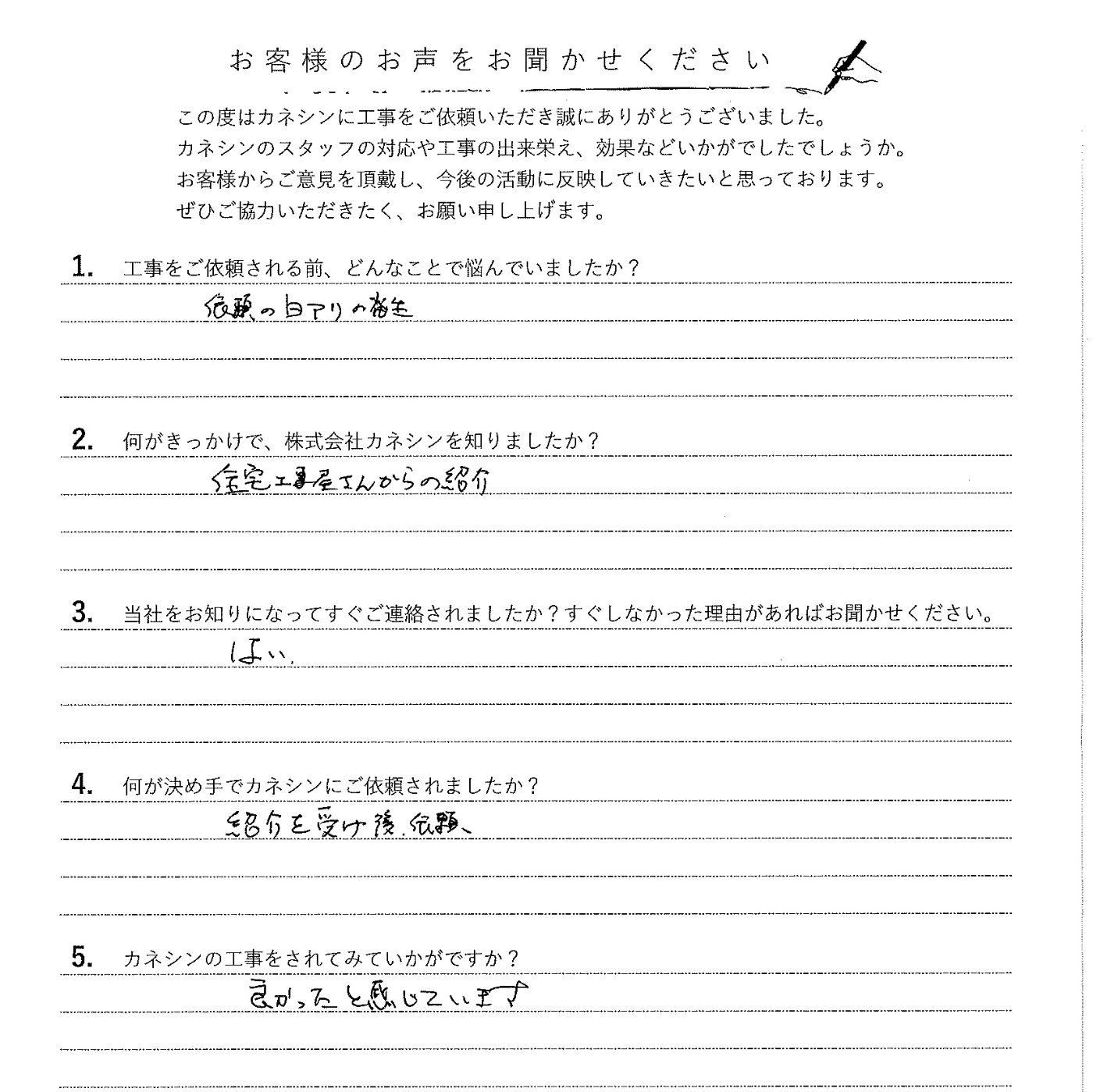 Q.5:カネシンの工事をされてみていかがですか?