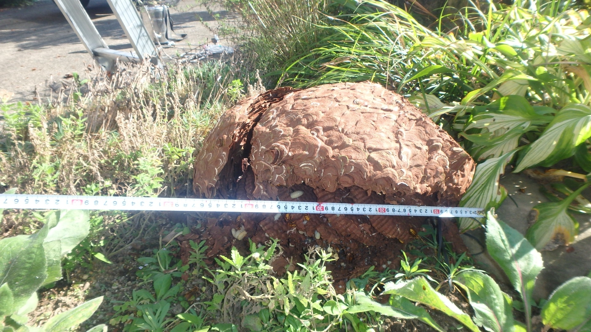 巨大なハチの巣の撤去を行いました。スズメバチやアシナガバチの巣の材料は周辺の樹木などの皮です。 お庭の木を全て伐採することは難しいです。。 しかし草刈りや剪定をこまめに行い、ハチの巣が作られにくくする環境づくりは大切なのかもしれません。 #アシナガバチ #クマバチ #スズメバチ #ハチ #ミツバチ