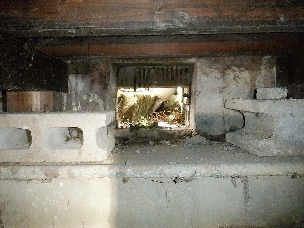 通気口の格子がなく、外と床下への行き来が簡単にできてしまう状態です。
