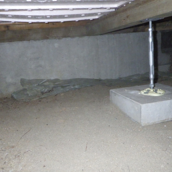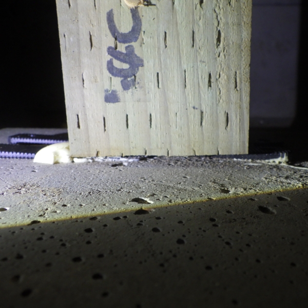 先日、点検に伺わせていただいたお客様のご自宅の床下を見てみると、束柱部分が束を支える石から浮き上がっている箇所が見つかりました。