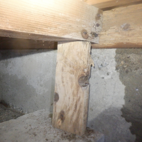 束柱(床組を支える柱)が一箇所だけ、上の柱との間に隙間が出来ており