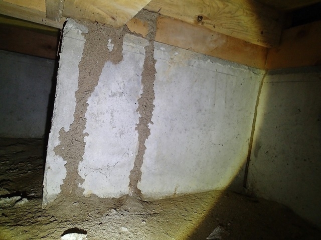 基礎にみっちりと作り上げられた蟻道です。 一般的には線のような細いトンネルが多いのですが、このトンネルには一体何匹のシロアリが通ったのでしょうか・・・。 床下にこのような蟻道があったら、すでにたくさんのシロアリがお家を蝕んでいるかもしれません。 カネシンではシロアリの駆除・防除を行っております。少しでも不安を感じたら、すぐにお電話ください! #シロアリ #シロアリ駆除 #床下 #蟻道