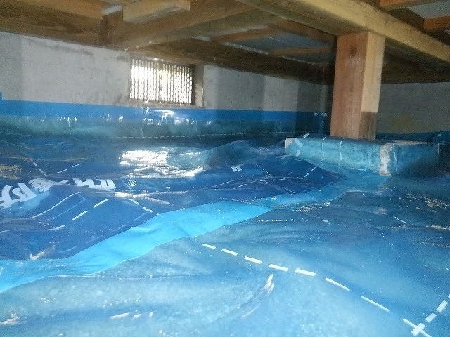 「防蟻防湿シート」というシートを敷いて、床下からの湿気対策の工事をさせていただきました!
