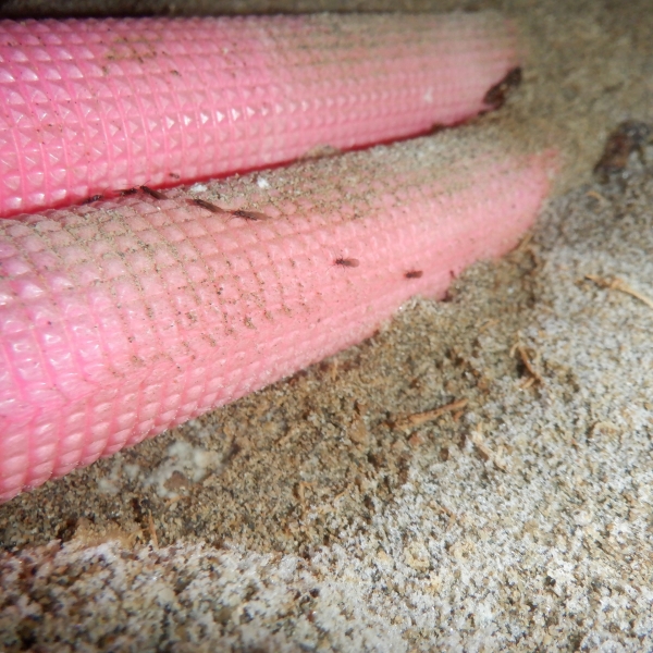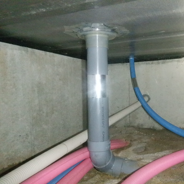 床下も入ってみると脱衣室の配管周りにアリの巣らしき穴があり、