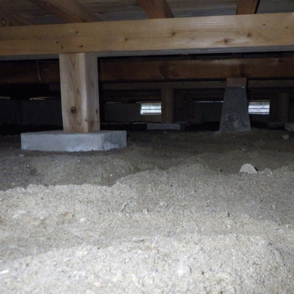 湿気の数値が高く、束柱が湿気を吸っており床下全体がジメジメしている状態でした・・