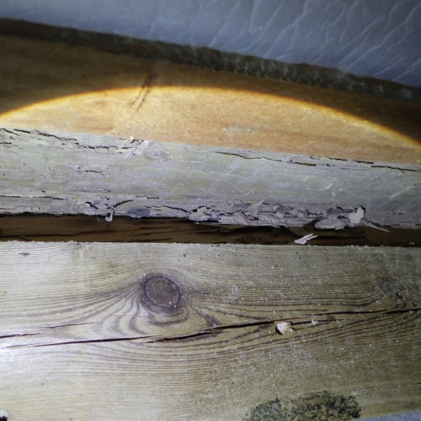 湿気を好む白蟻は、湿気が多い床下に住み着きこのように家の基礎や柱を食い荒らすのです。