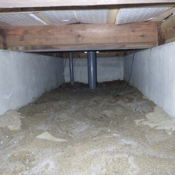 床下の湿気がとても強く、ところどころ地面の砂が湿っているのを発見しました・・