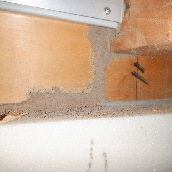 基礎断熱材から床下木部の隙間にかけて蟻道ができているのを発見しました・・!
