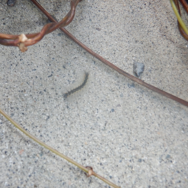 体全体に白色の柔らかく長い毛と短い黒色の毛が多数生えています。幼虫は成長すると約3cmまで大きくなります。