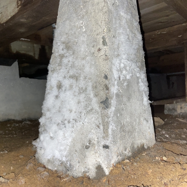 ↓これは床下の湿気によって白カビが繁殖しているんです・・
