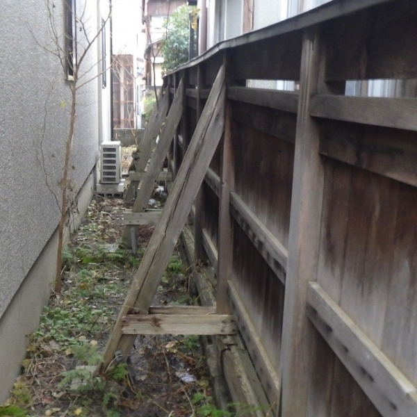 写真のような家の外周辺にある木の柵や物置にある使わなくなった木材などに砂が付いていたり、