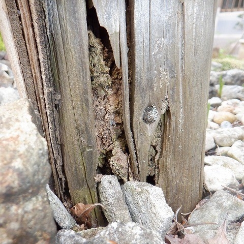 お庭にある木材の囲いの隙間に蟻道が隠れているではありませんか・・!